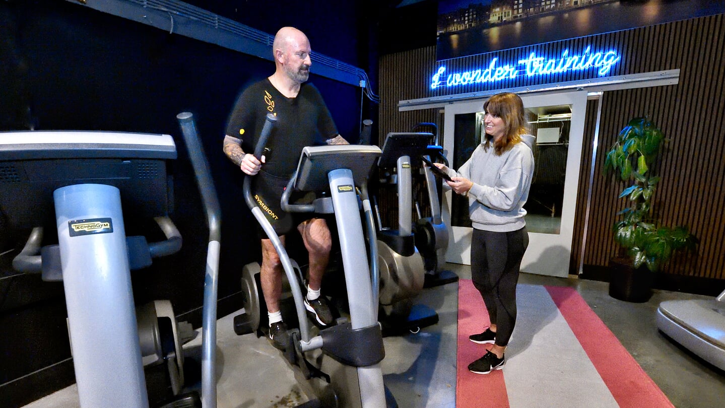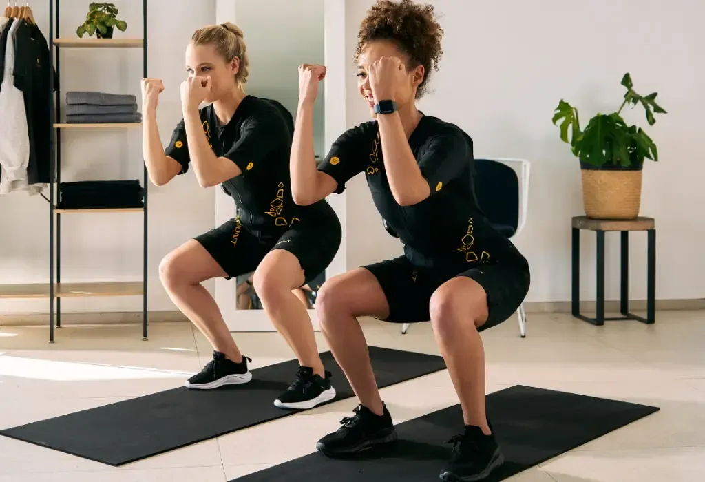 Je draagt een speciaal pak dat elektrische impulsen naar je spieren stuurt, waardoor ze extra intensief worden geactiveerd.